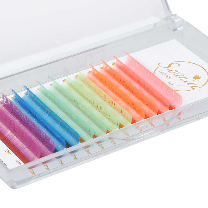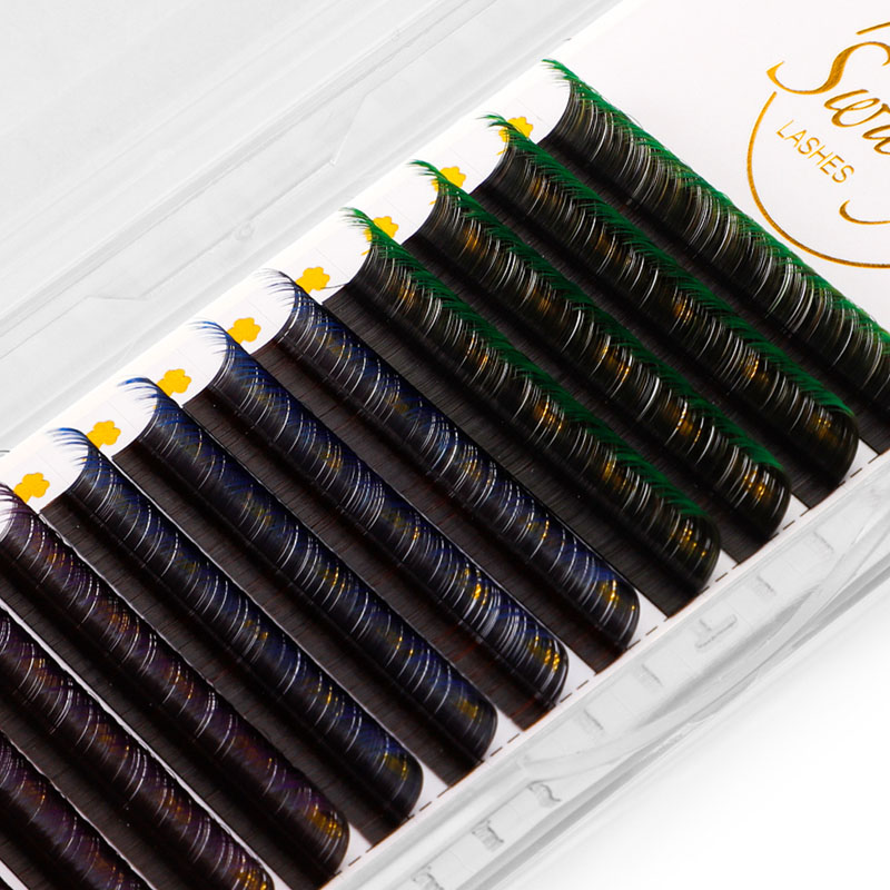 स्वानिया रंगीन बरौनी एक्सटेंशन में ओम्ब्रे रंग (ओम्ब्रे ब्लू, ओम्ब्रे पर्पल, व्हाइट पिंक ओम्ब्रे, आदि), सामान्य रंग (लाल, गुलाबी, पीला, सफेद, हरा, नीला, बैंगनी, आदि), नीयन रंग होता है।